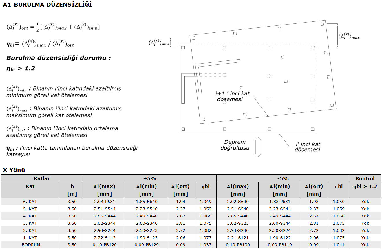 Eşdeğer deprem yükü yöntemi; ideCAD Statik IDS v10’ da Tablo 3.6’da belirtildiği gibi düzensizliklerin kontrolünde kullanılmaktadır.