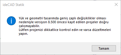 Eğer kaydetmek istediğiniz versiyon 8.62’den daha eski ise projenizin açılamaması ihtimaline karşılık uyarı ekranı karşınıza gelecektir.