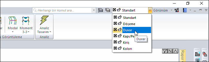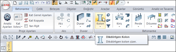ideCAD’de her obje kendi default katmanında oluşturulur. Örneğin kolonlar otomatik olarak kolon katmanında yer alır. Objeler istenirse farklı bir katmanlarda oluşturulur.