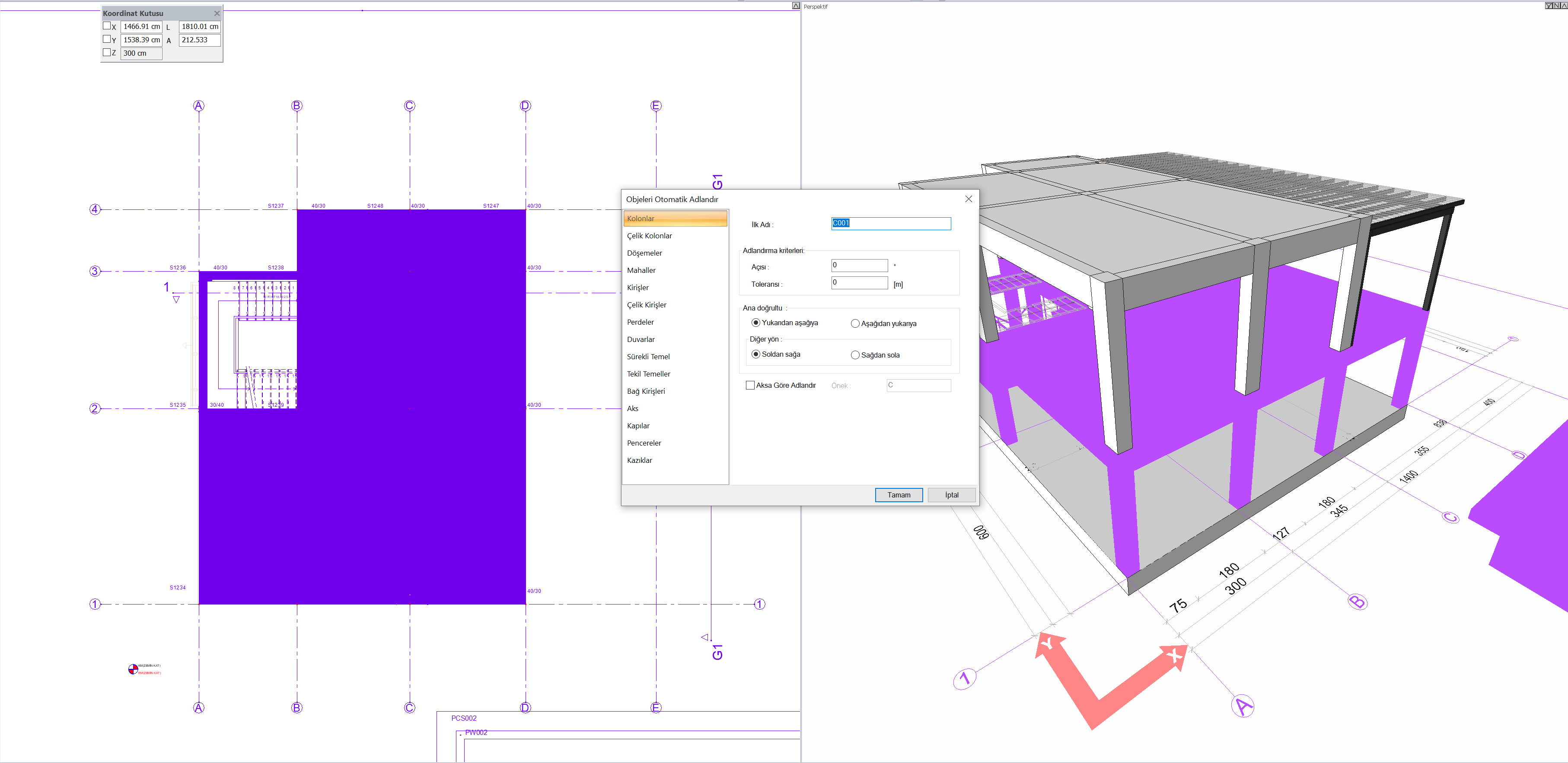 Taşıyıcı sistemi revize edilen yapı bilgi modelinde geometri kontrolü ve yetersizlik kontrolleri yapılır.
