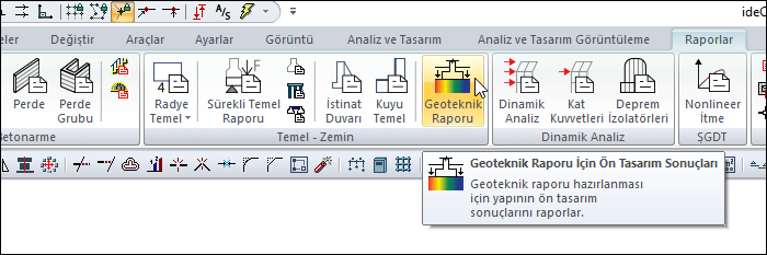 Raporlar sekmesi Temel - Zemin başlığı altından ulaşabilirsiniz.