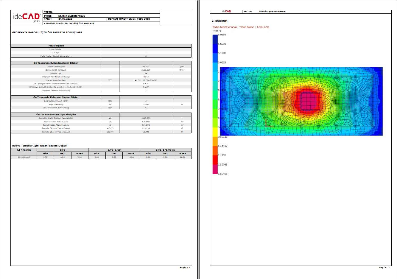 Örnek geoteknik raporu için ön tasarım sonuçlarının sayfaları ![]() |
