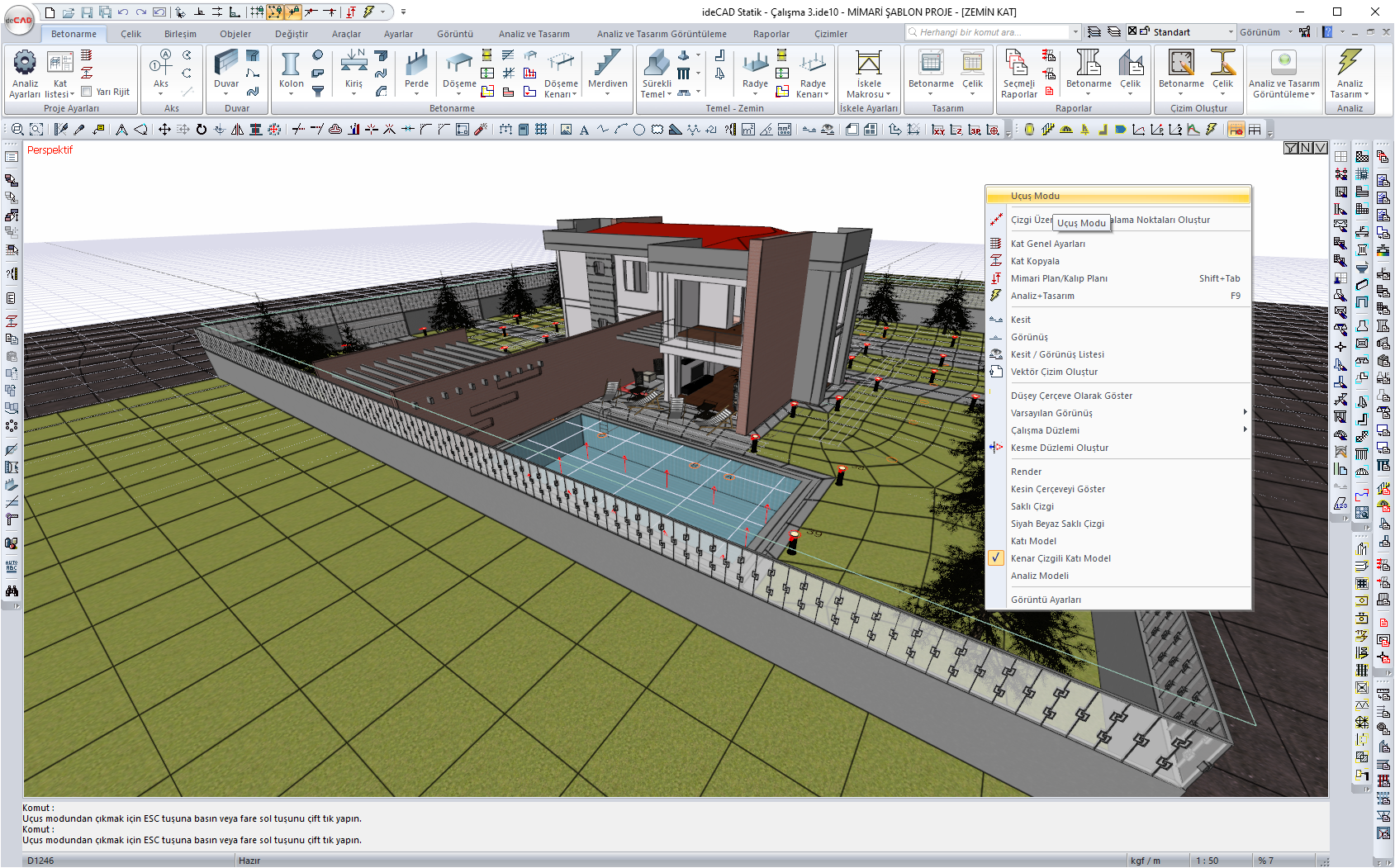 Modeli içerisinde geziniyormuş gibi inceleyebilmek için Uçuş Modu tasarlanmıştır. Klavye yön tuşlarını kullanılarak yapı içerisinde kolayca gezinilir, fare hareketiyle bakış yönü belirlenebilir.