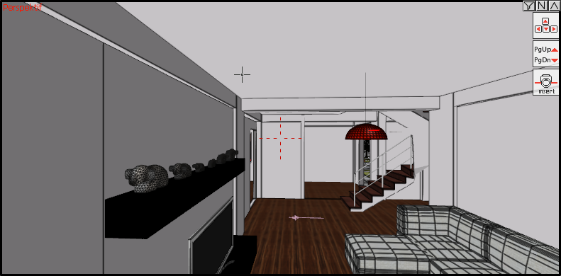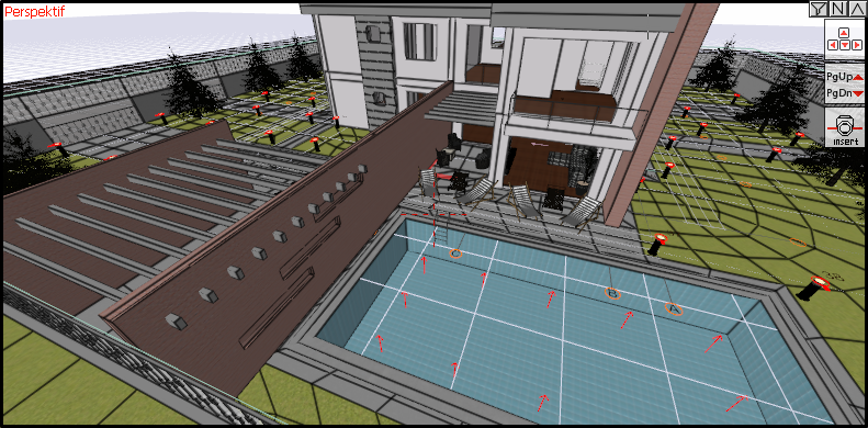 3B perspektif görüntüde uçuş moduna geçildiğinde klavye tuşlarına ilişkin yardım bilgisi perspektif pencerenin sol sol üst köşesinde belirmektedir.