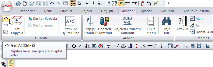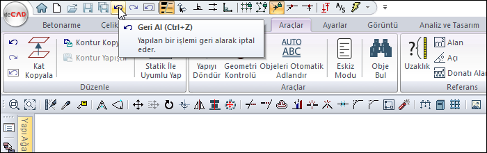 Geri Al komutuyla yapılan bir işlem geri alınarak iptal edilir.