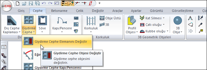 Giydirme Cephe Elemanını Değiştir Komutunun Yeri
