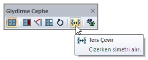 Giydirme cephe elemanının bir yönü dış cephe, diğer yönü iç cephedir. Bu aşamada toolbardan Ters Çevir ikonunu tıklarsanız ya da klavyeden boşluk tuşuna basarsanız, elemanın dış yönünü içe, iç yönünü dışa çevirirsiniz. Çizerken, çizim hattı üzerinde var olan ok yönü, giydirme cephe elemanın dış cephesini göstermektedir.