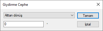 Giydirme cephe ile ilgili açılan diyalogdan dönüş düzlemi ile açısı belirtin.