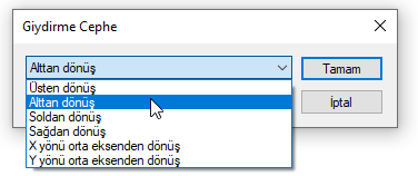 Dönüş düzlemi seçilmesi ve açı verilmesi ![]() |