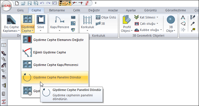Giydirme Cephe Panelini Döndür Komutunun Yeri