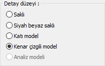 Detay düzeyi ![]() Perspektif ve 3 boyutlu görünüş ekranlarında modelin görüntü tekniği seçilir. |