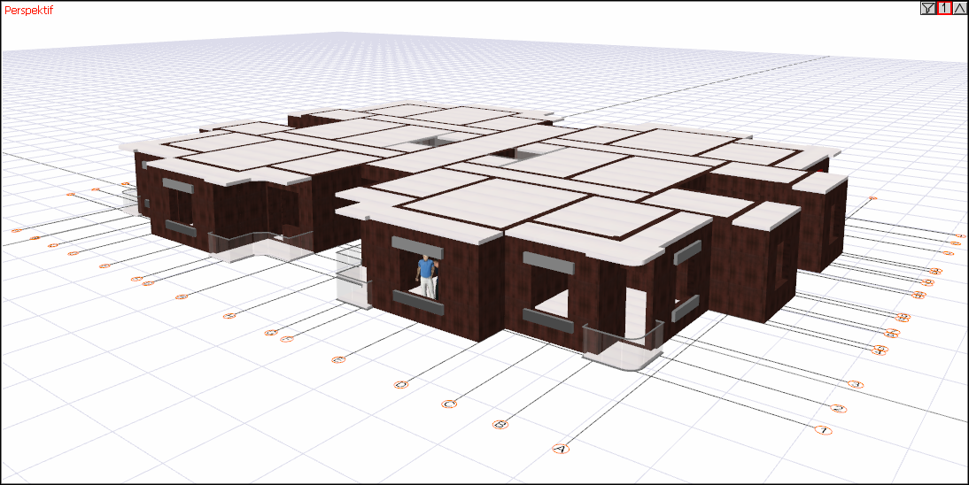 Perspektif görünümün sağ üst köşesinde bulunan ikonlardan ortaki tuşu kullanınız. Tuşa bir kez basıldığında sadece aktif kat görünür. Tekrar basıldığında tüm katlar görünür