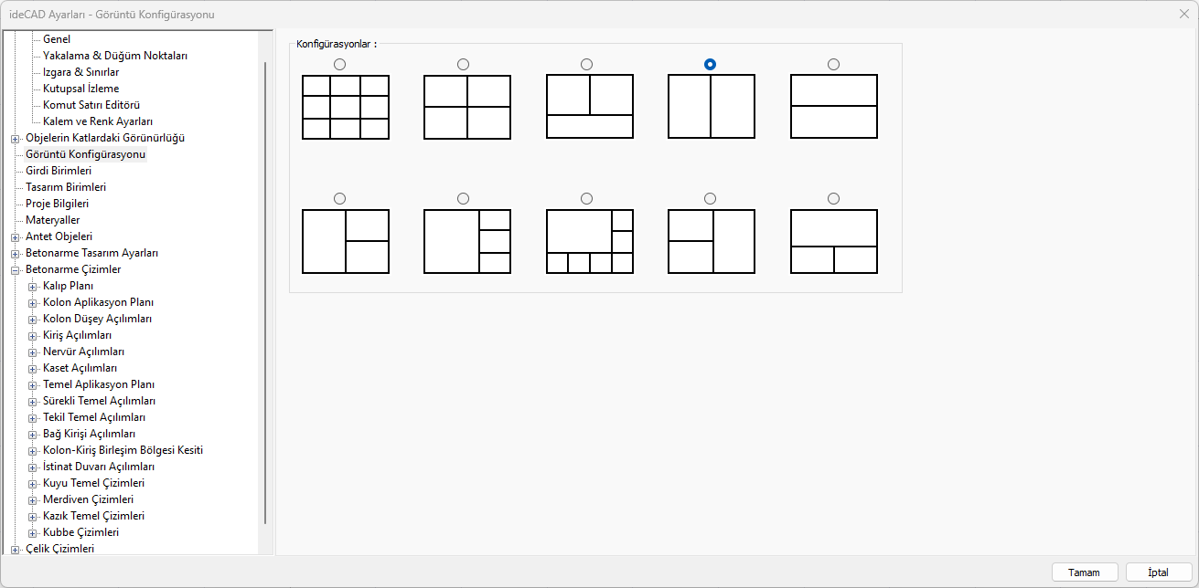Görüntü konfigürasyonu özelliği ile çalışma ekranı bölümlere ayrılır. Görüntü konfigürasyonu sekmesinden hangi ekran şekli ile çalışılmak isteniyorsa, o seçenek işaretlenir.