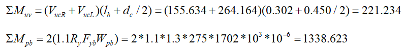 Yukarıdaki denklemlerde sadece düşey yük etkisinde hesaplanan VdR ve VdL kesme kuvvetleri (1.2G+0.5Q+0.2S) yük birleşimi altında elde edilmiştir.