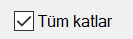 Tüm Katlar ![]() İşaretlendiğinde döşemeleri tüm kat boyunca listeler. İşaretlenmediğinde sadece çalışan aktif katın döşemeleri listelenir. |