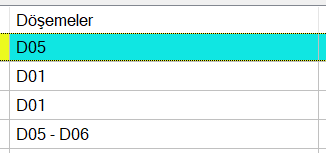 İsim ![]() Döşemenin planda görünen ismidir. (D1, D2, D10 vb) Olumsuzluk durumunda plağın ismi yanında olumsuzlukla ilgili terim eklenir. D101(Min) vb yazısı görünür. |