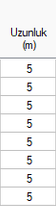 Uzunluk ![]() Hasır donatının uzunluğu görünür. Hücreye tıklanarak değişiklik yapılır. |