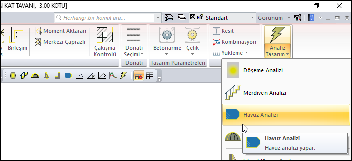 Analiz Tasarım ikonu altında bulunan Havız analizi ikonunu tıklayınız.