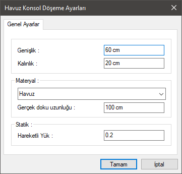 Hareketli yük ![]() Havuz konsol döşemesinde dikkate alınacak hareketli yük değeridir. |