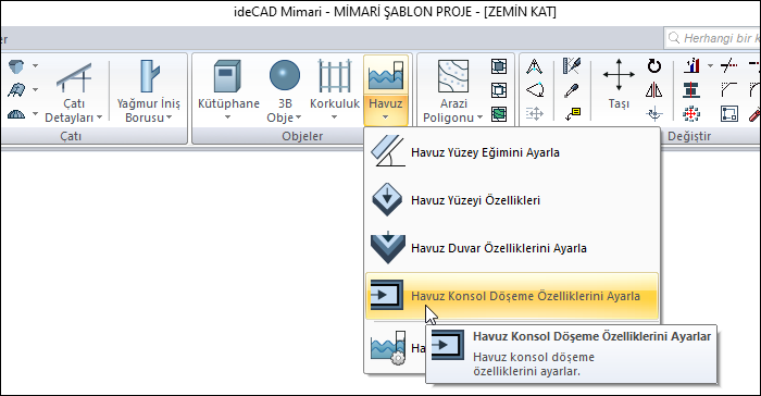 Havuz Konsol Döşeme Özelliklerini Ayarla Komutunun Yeri