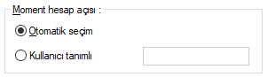 Moment hesap açısı ![]() Otomatik seçimde, çoğu durumda tercih edilen seçenektir. Ancak özel sistemlerde hesap açısını istediğiniz değerde verin. |