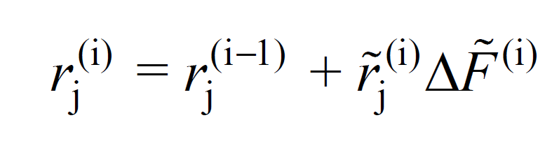 Ardışık iki plastik mafsal oluşumu arasındaki herhangi bir i 'inci itme adımı sonunda, sonunda, taşıyıcı sistemin herhangi bir (j) noktasında veya kesidinde oluşan herhangi bir yerdeğiştirmeyi, plastik şekildeğiştirmeyi veya iç kuvveti temsil eden tipik büyüklük rj(i) olarak temsil edilir ve aşağıdaki denklem ile hesaplanmaktadır.