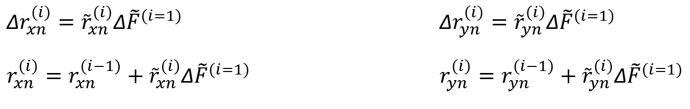 ( X ) ve ( Y ) doğrultusundaki deprem için, itme analizinin i 'inci itme adımında, tipik bir n 'inci doğal titreşim moduna ait ( j ) noktasında veya kesidinden hesaplanan tipik yerdeğiştirme, plastik şekildeğiştirme veya iç kuvvet artımını Δrxn(i) ve Δryn(i) şeklinde ifade edilir.