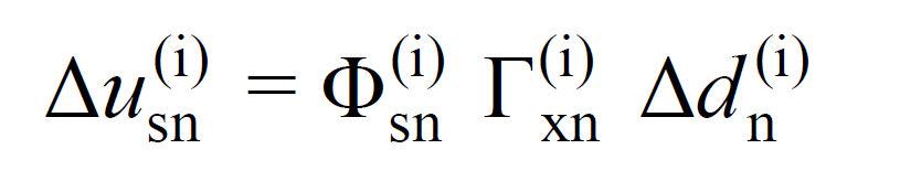 Yukarıdaki bağıntıyı ( X ) doğrultusundaki deprem için itme analizinin i 'inci itme adımında ve tipik bir n 'inci doğal titreşim moduna ait yerdeğiştirme artımı şeklinde ifade edilebilir, Δuxsn(i). Benzer şekilde ( X ) doğrultusundaki deprem için modal yerdeğiştirme artımını, Δdxn(i) ve mod şekil genliğini, Φxsn(i) biçiminde yazılabilir.