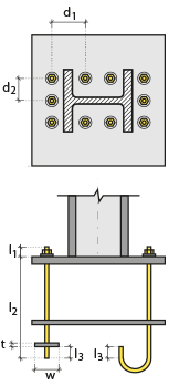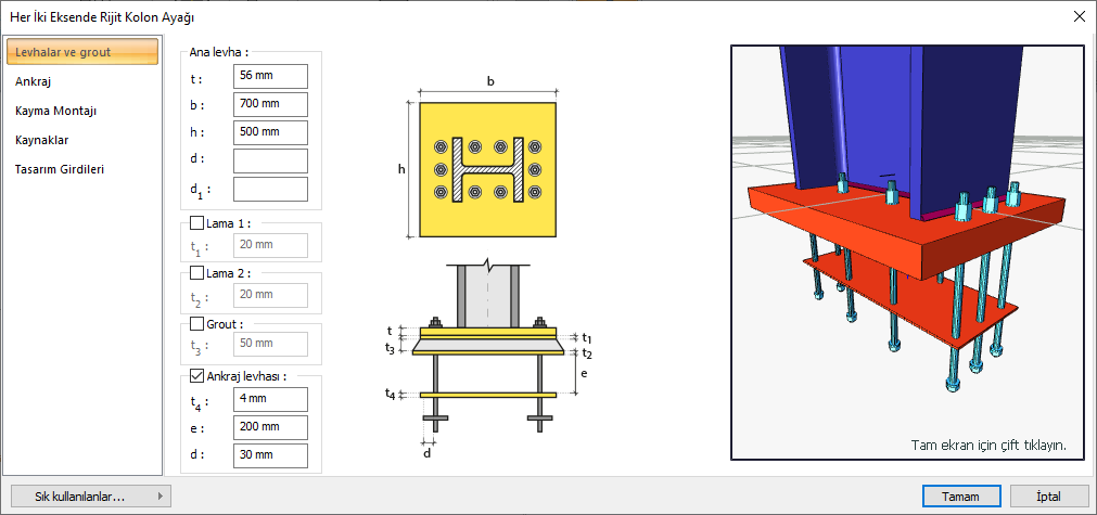 Ankraj levhası ![]() Ankraj levhası değer girilerek belirlenir. Girilecek değerler şematik çizimde gösterilmektedir. |