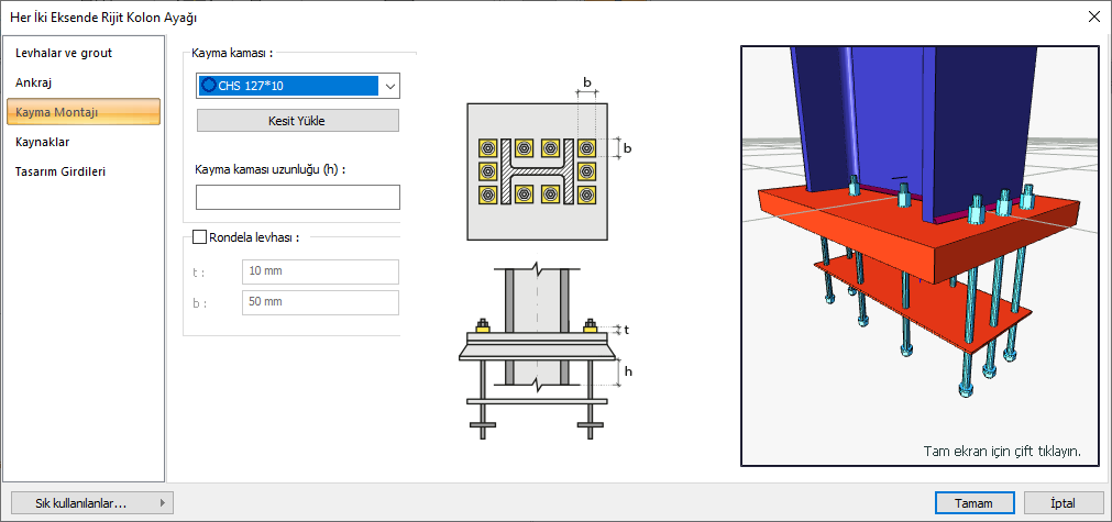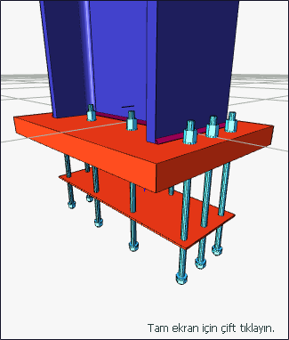 Her İki Eksende Rijit Kolon Ayağı komutu ile çelik kolon-temel birleşimi tanımlanır.