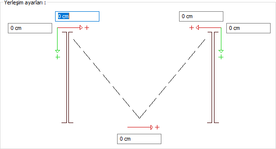 Yazı yerleşimi ![]() Çelik çapraz isminin yazılacağı konumu diyalogdaki şekle göre belirlenir. Program çapraz oluşturulduğunda seçilen konuma göre elemanın adını yerleştirecektir. |