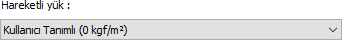 Hareketli yük ![]() Listeden hareketli yük için uygun olan değeri seçiniz. Listede çıkan değerler, döşeme yük kütüphanesinde tanımlanmış değerlerdir. Listedeki bir değeri kullanmak yerine başka bir değer kullanacaksanız, listeden "kullanıcı tanımlıyı" seçin ve bir değer girin. |