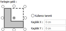 Yerleşim şekli ![]() Kolonun plandaki kaçıklığını belirleyen seçeneklerdir. Kolon aks üzerine yerleşiminde 9 farklı kaçıklığın ayarlanmasını sağlar. Plan düzlemine göre gösterilen şemada ilgili seçeneği işaretleyin veya kullanıcı tanımlı bölümde herhangi bir sayısal değer girin. |