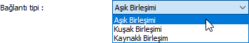 Bağlantı tipi ![]() Ana eleman ile çelik aşıklar arasında otomatik oluşturulan kayma birleşimleri için açılır listeden seçim yapılır. |