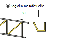 ![]() Sağ konsol ekle bölümünden makasın sağ üst ve alt başlıklarına farklı değerler vererek konsol eklenir. Dengele seçeneğini işaretleyerek alt başlığa verilen değer üst başlığa da uygulanır. Sağ kapak seçeneği işaretlenerek konsolun ucuna kapak eklenir. |