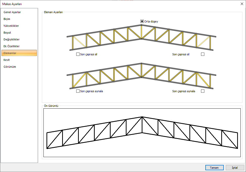 Son çaprazı sil ![]() Seçeneği işaretlenerek makas son çapraz elemanı kaldırılır. ![]() |