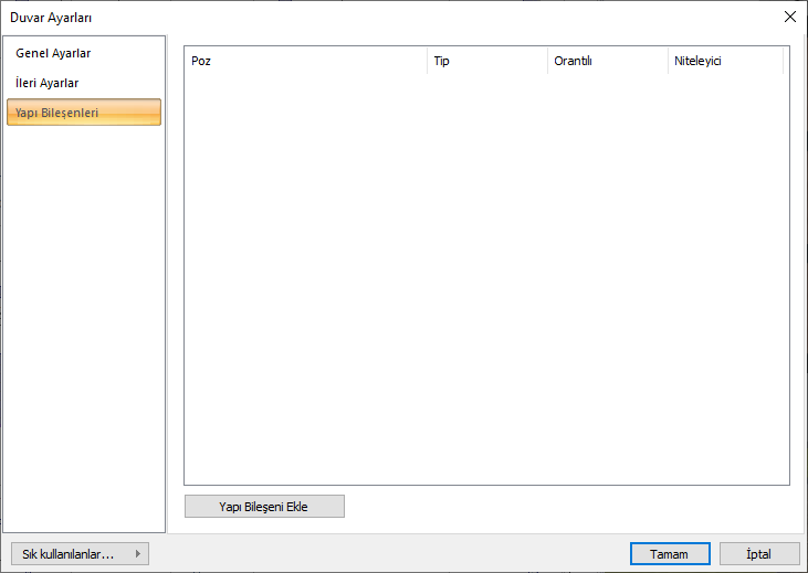 Yapı Bileşeni Sekmesi