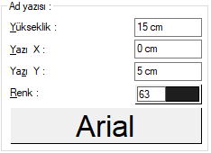 Ad Yazısı Yükseklik, Renk, Yazı Tipi ![]() Kazık adı yazısının yüksekliği girilir. Renk kutusu farenin sol tuşu ile tıklanıp tuş basılı tutularak açılan renk paleti üzerinde kaydırılır. İstenen rengin üzerine gelindiğinde tuş bırakılır. Renk kutucuğu seçilen renge dönüşür. Shift tuşu ile birlikte tıklanırsa, ilgili rengin kalem kalınlığı ayarlanabilir. Hemen alttaki buton tıklanırsa, Yazı Tipi Ayarları diyalogu açılır. Bu diyalogdan Kolon Başlığı Ad Yazısı, yazı tipi ayarlanır. Yazılar yatay olarak yazılır. |