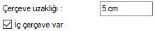 Çerçeve uzaklığı ![]() Kolonun tekil temele oturduğu yerde tekil temel üzerinde kolonu çevreleyen bir çerçeve çizdirilebilir. Bu kutucuğa çerçevenin kolon yüzünden mesafesi girilir. Çerçevenin çizilmesi isteniyorsa “İç çerçeve var” seçeneğine işaret konur. Bu seçenek işaretlenmezse çerçeve çizilmez. |
