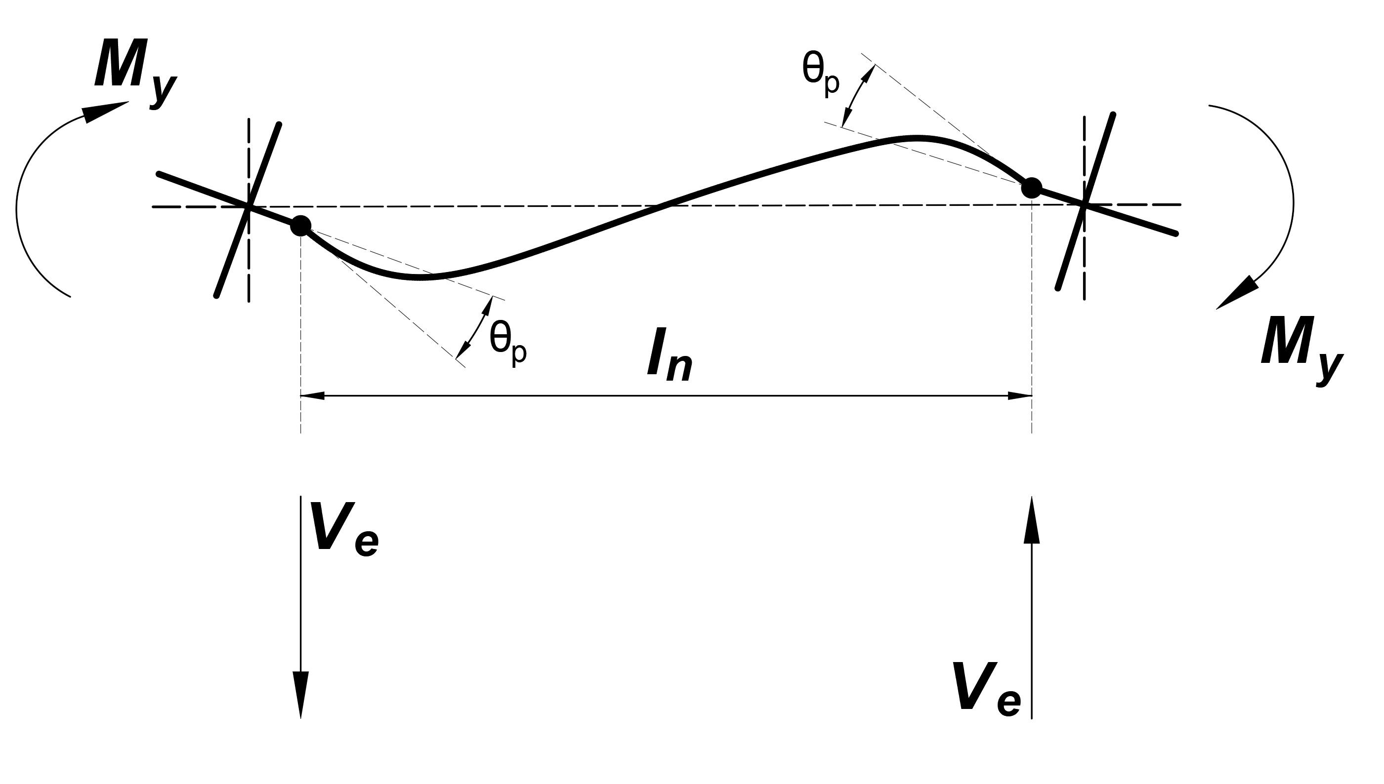 Elemanların sünek davranış gösterebilmeleri için kesme kuvveti etkisi altında hasar oluşmaması gerekir. Bu nedenle elemanın kayma dayanımı, plastik mafsal oluşumunda meydana gelen kesme kuvveti değerinden büyük olması gerekir. Bu kesme kuvveti değeri elemanın performans noktasındaki kesme kuvveti değeridir. Aşağıdaki şekilde kirişin her iki ucunda plastikle sonucu oluşan My , momentinden kaynaklanan kesme kuvveti Ve gösterilmiştir.
