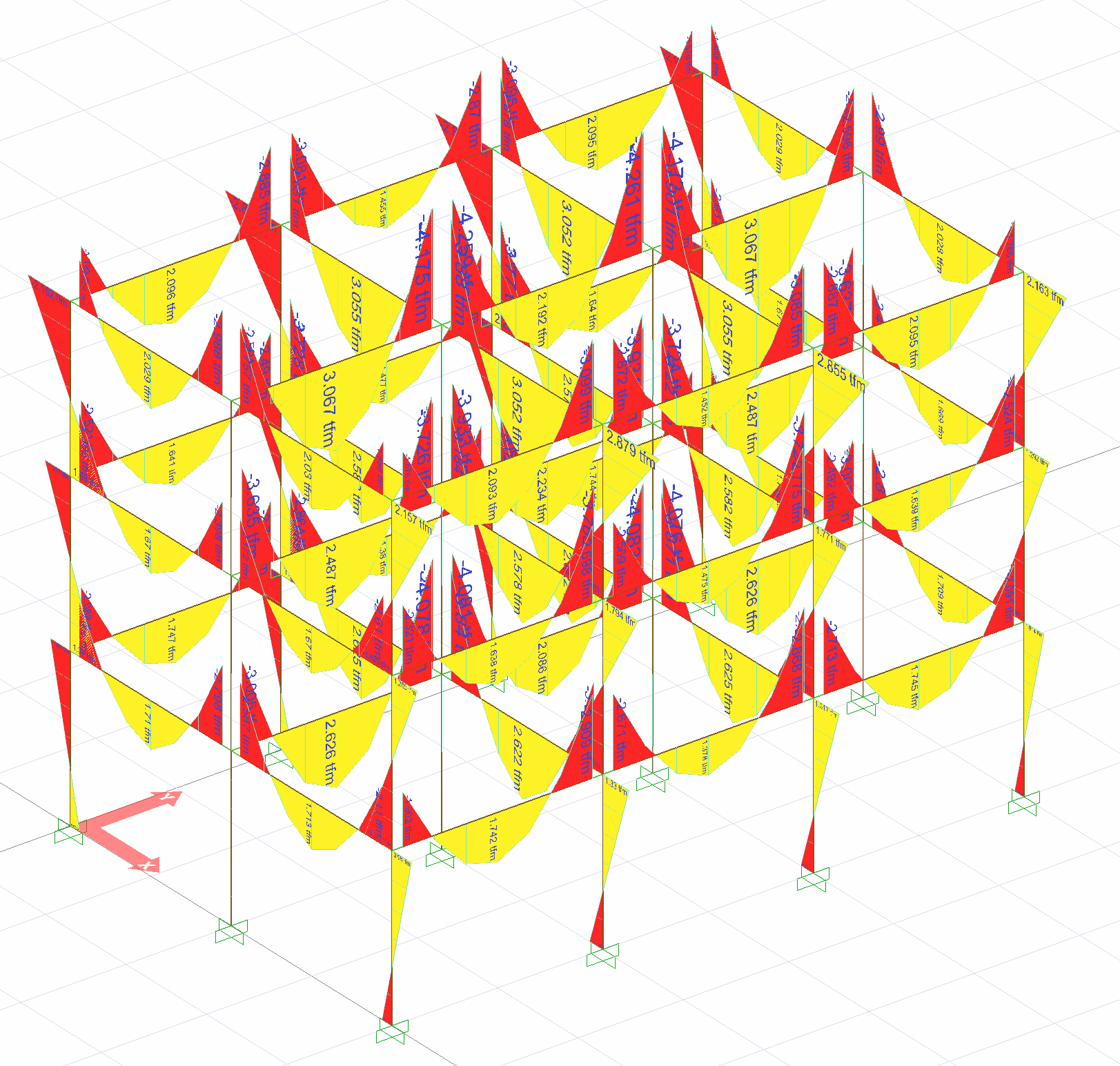 Taşıyıcı sistem modeli, tanımlanan kolon, kiriş, döşeme, perde elemanlarında göre otomatik olarak oluşturulur.