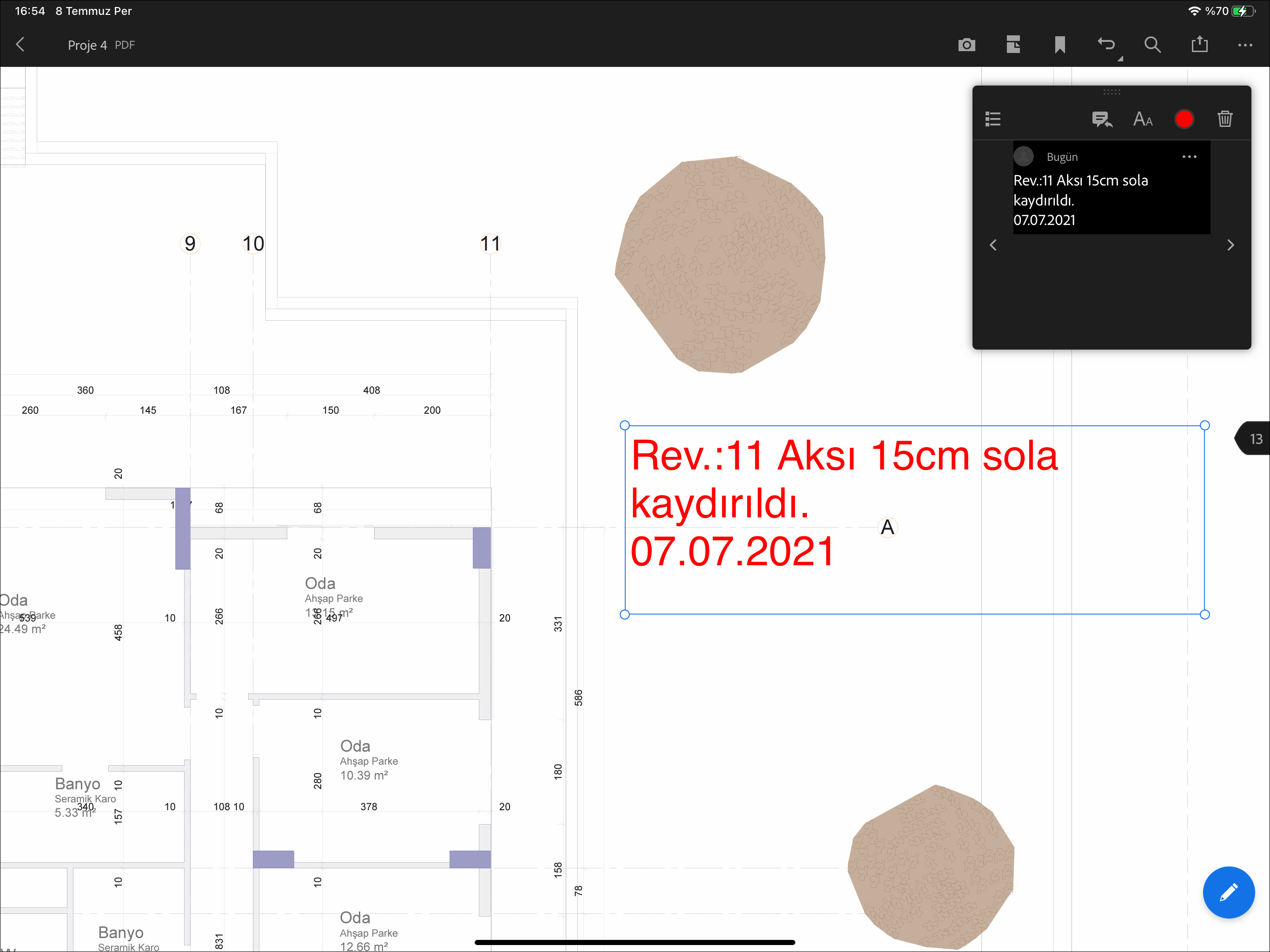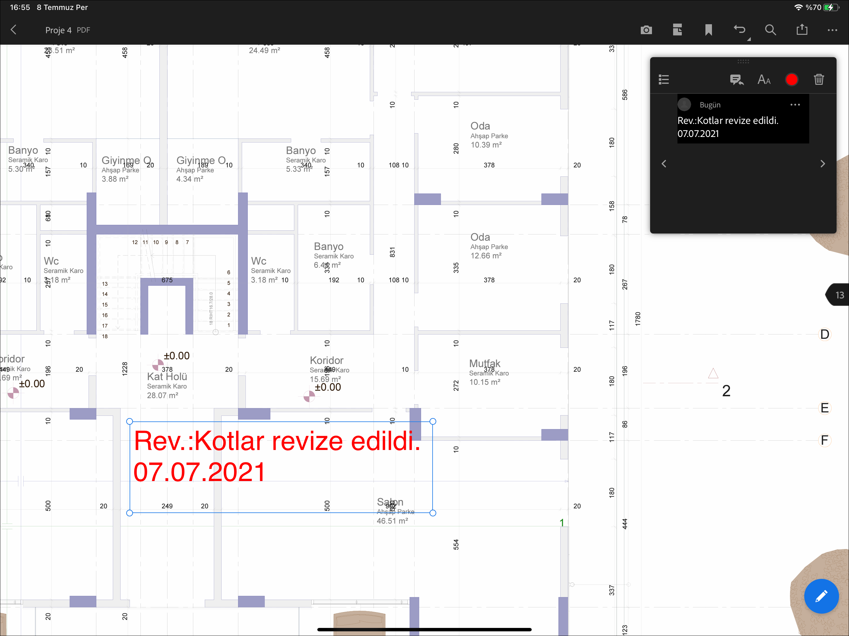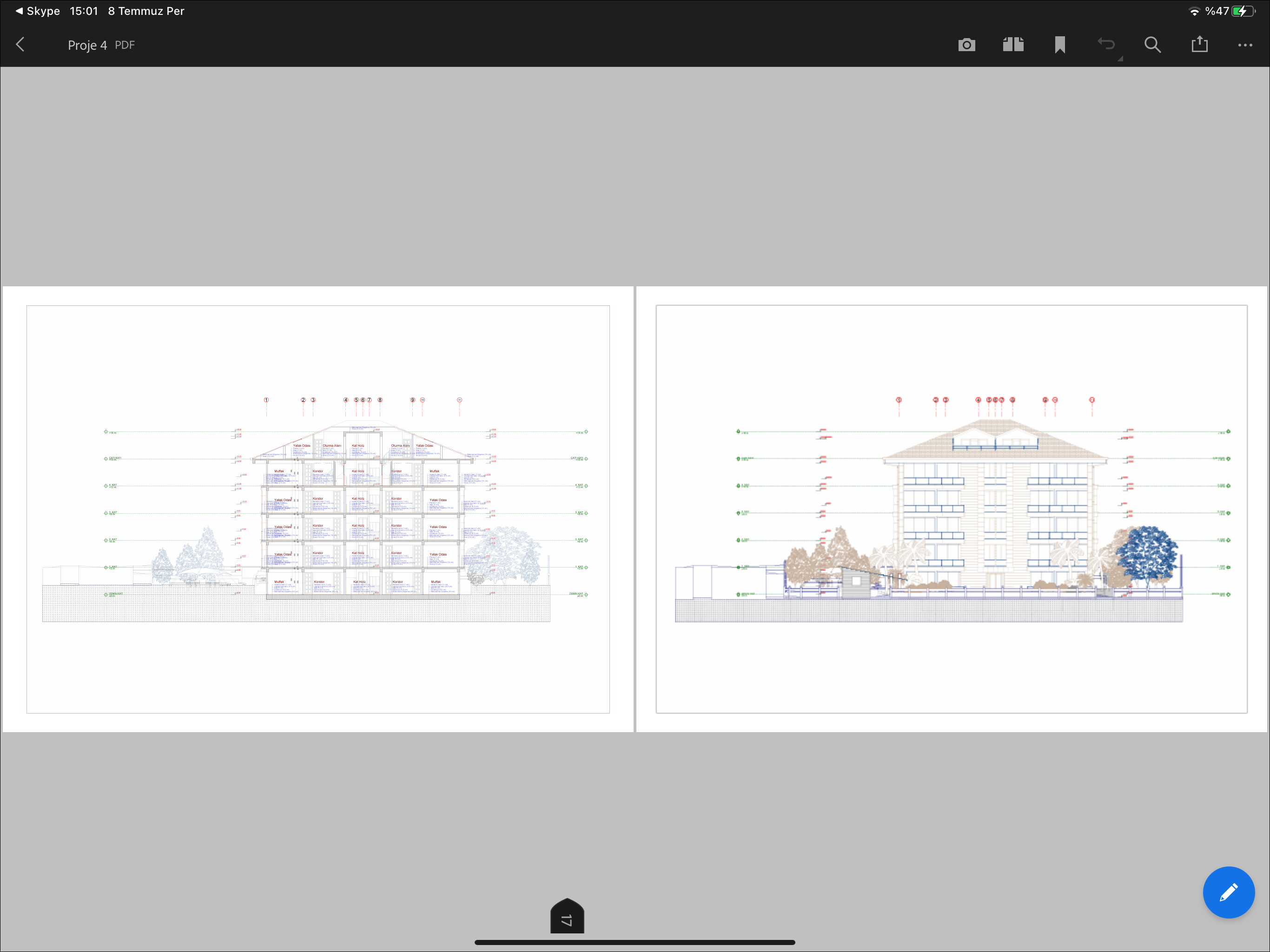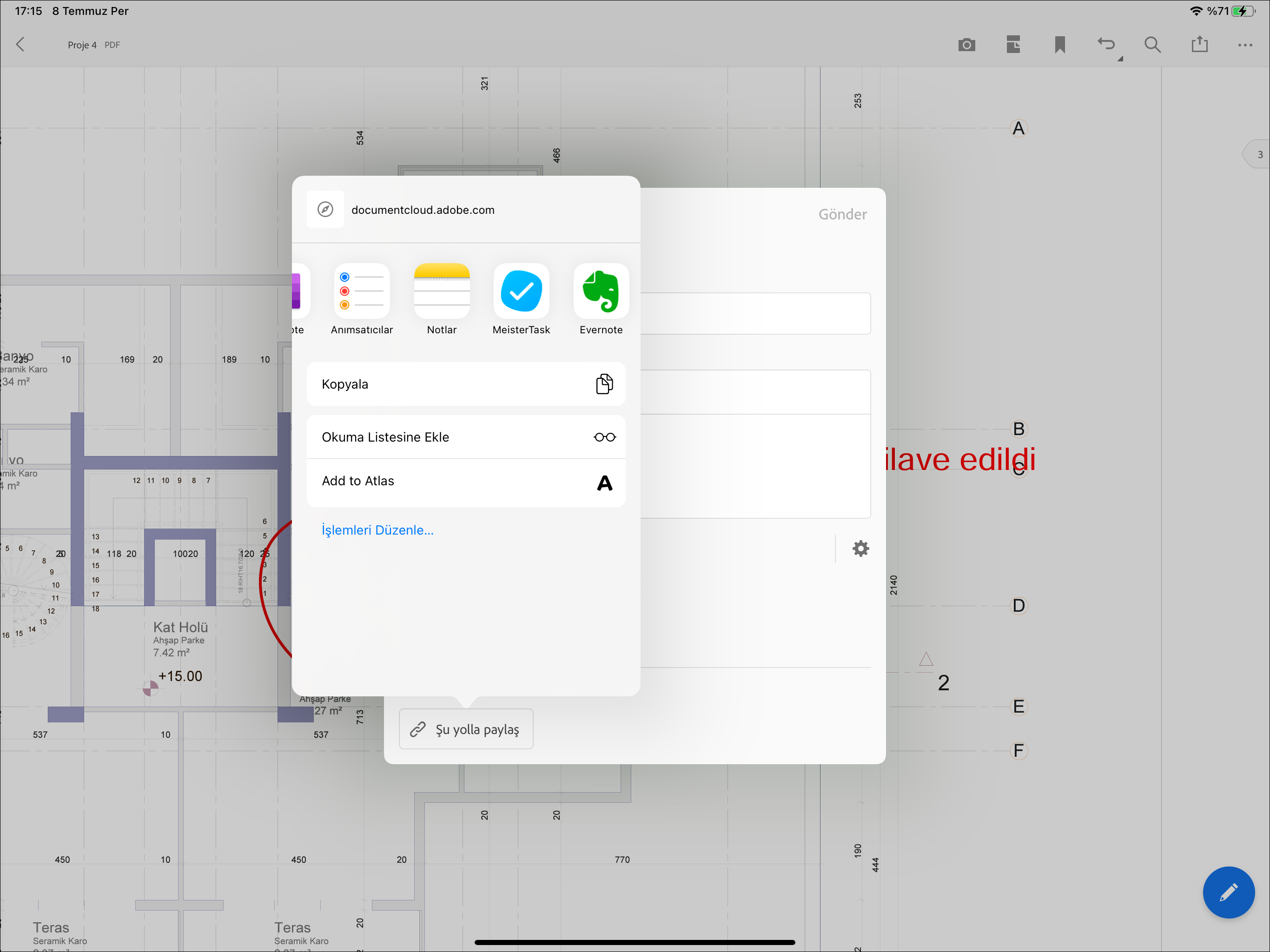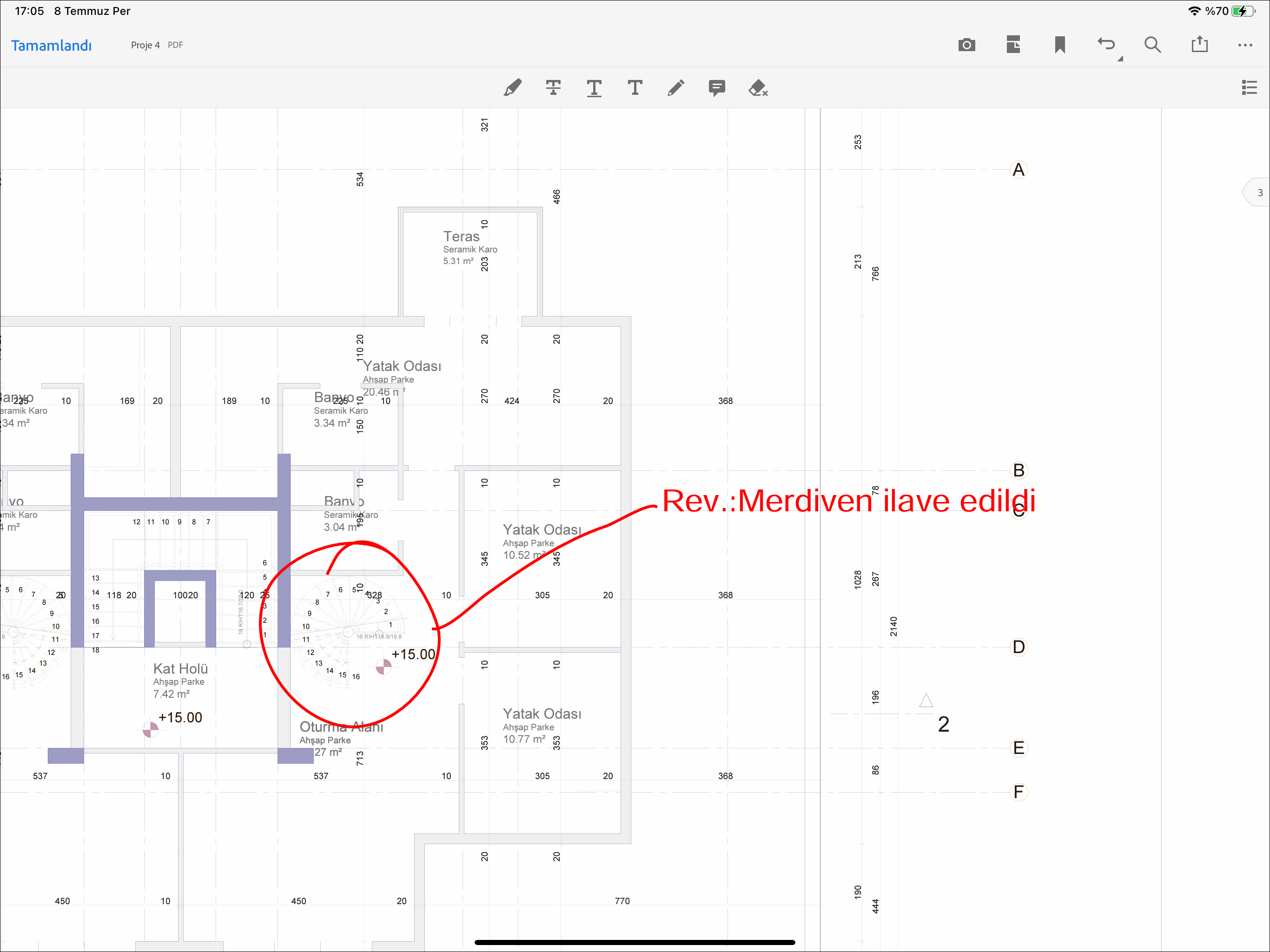 Yer imleri işaretine dokunarak pdf dosyasında yer alan çizimlerin listesine ulaşabilir, bu listeden istediğiniz çiziminize geçiş yapabilirsiniz.