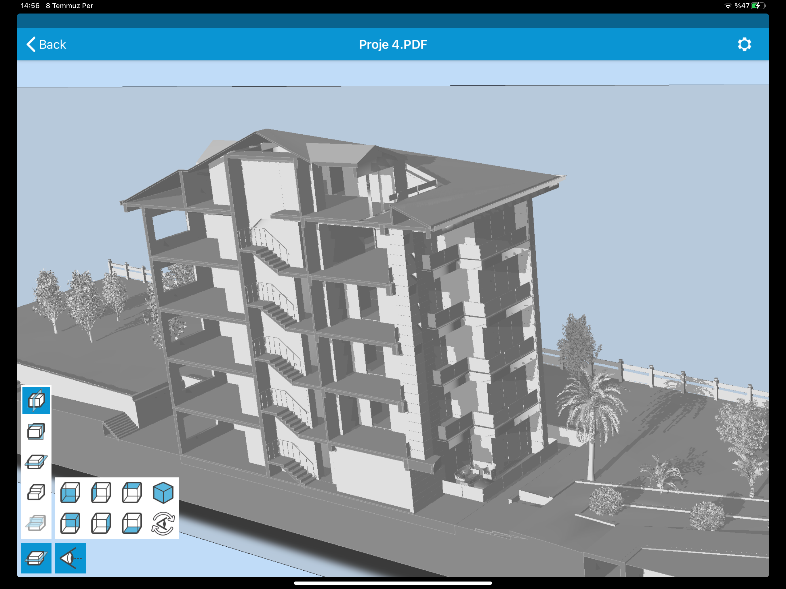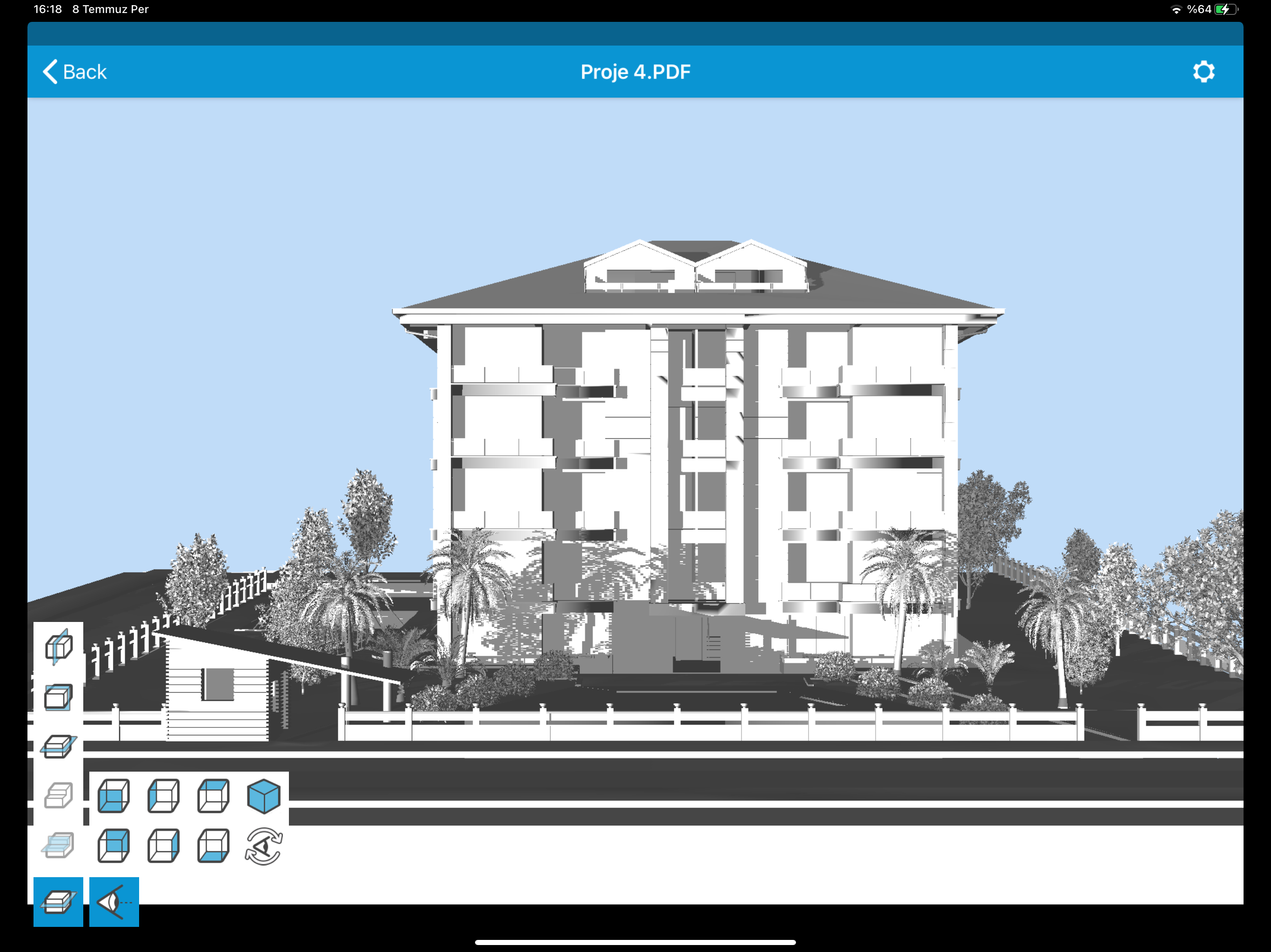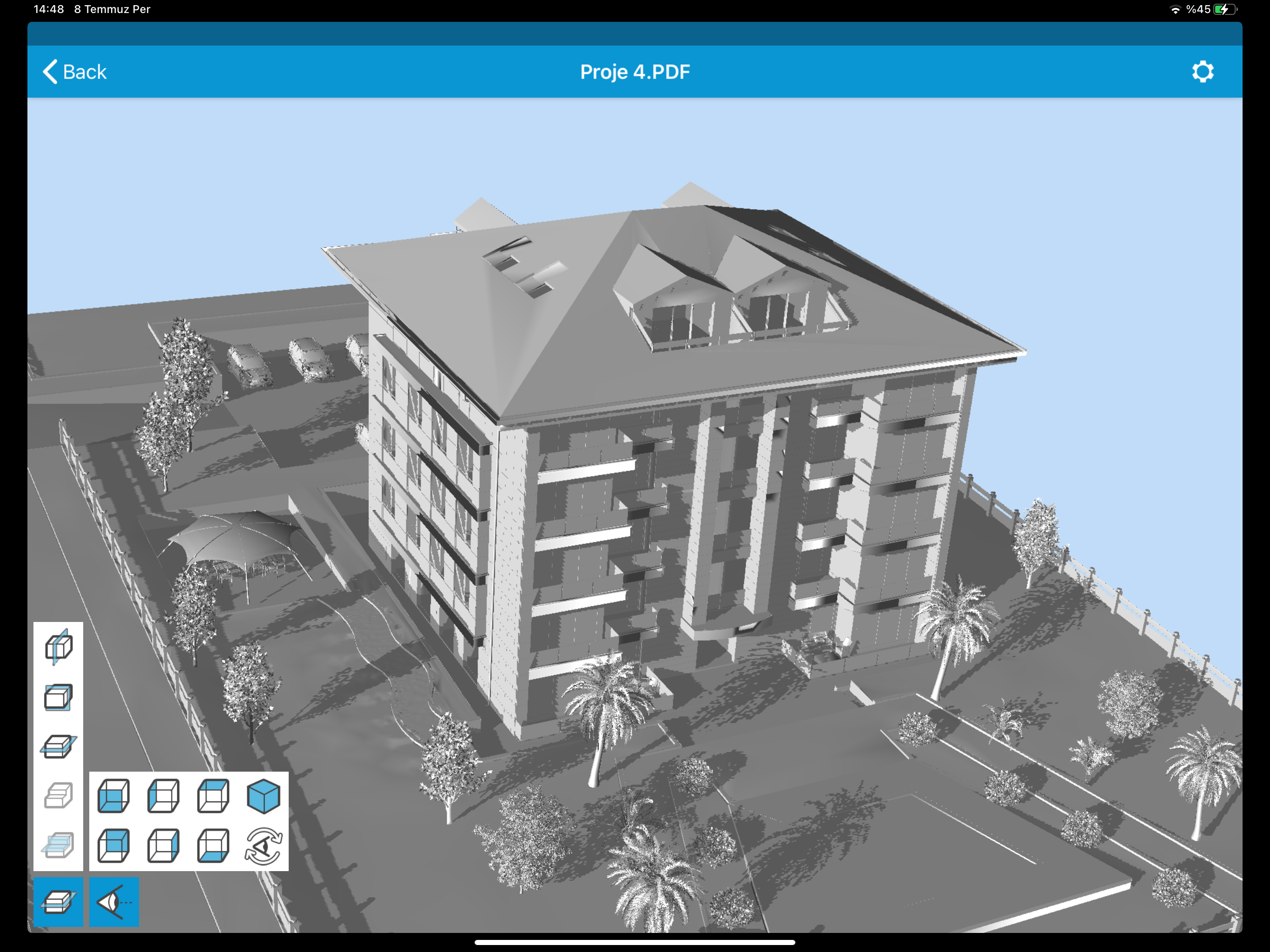 İsterseniz sol altta yer alan göz ikonuna dokunarak modelinize cephelerinden bakabilirsiniz.