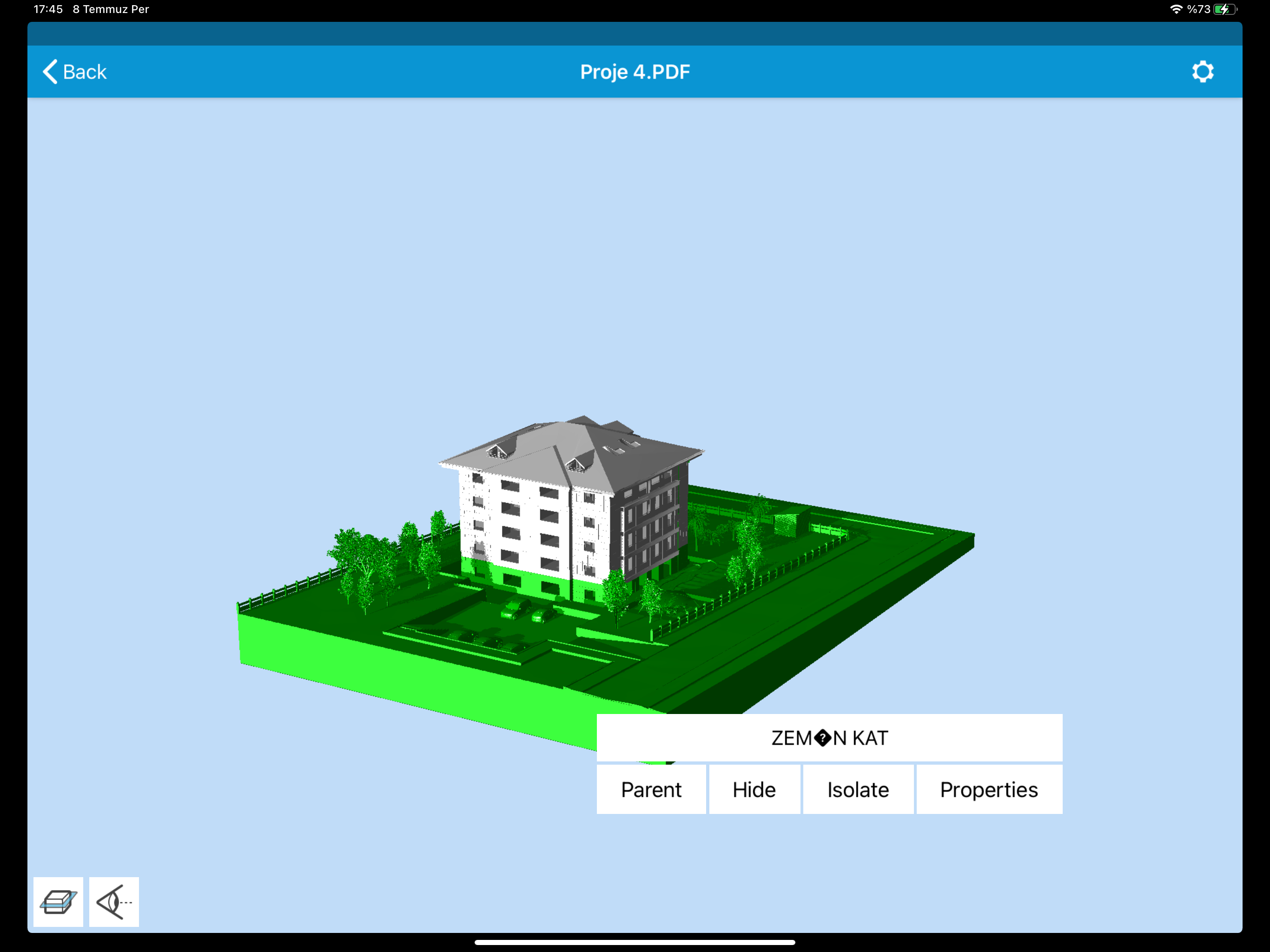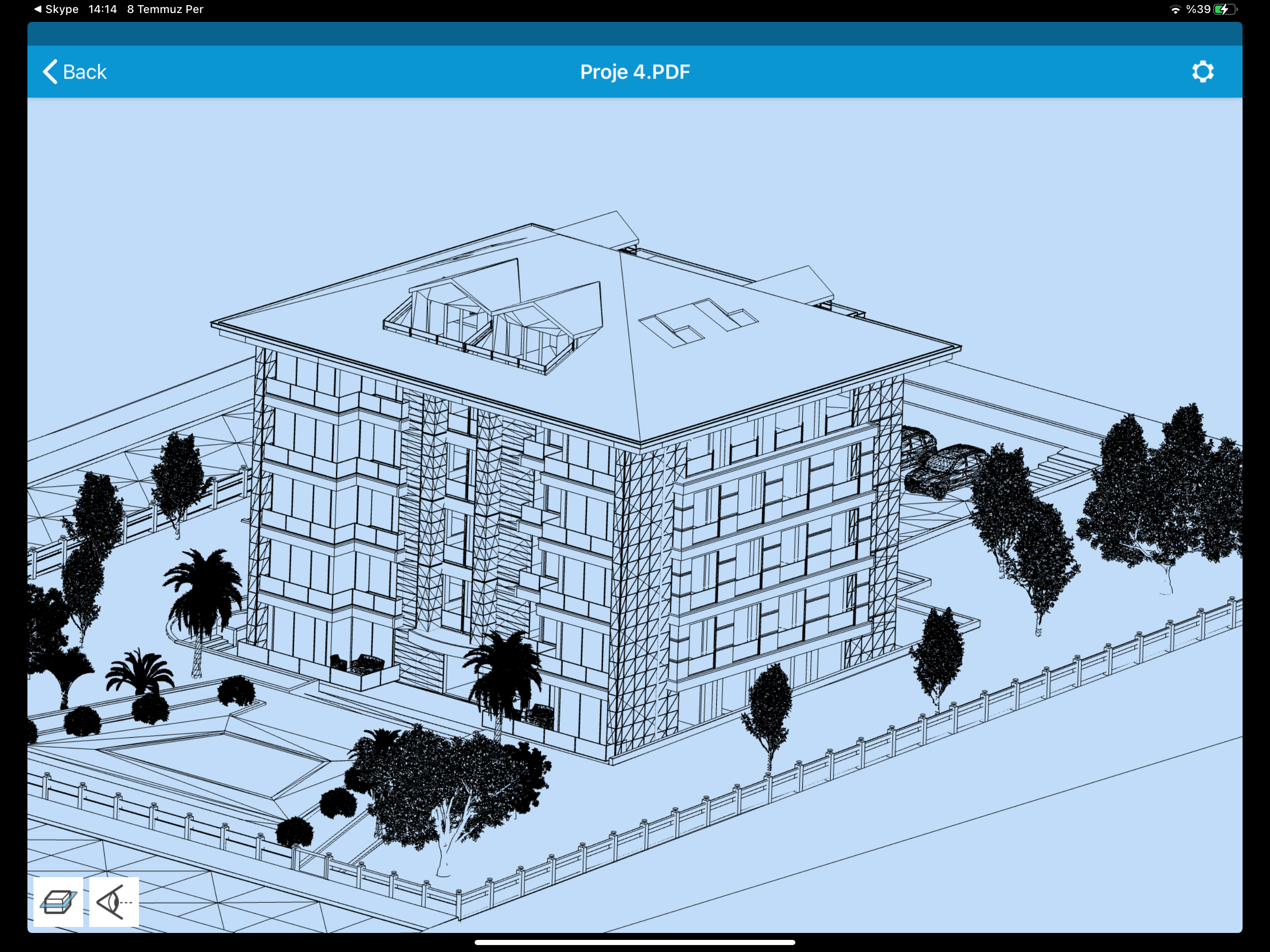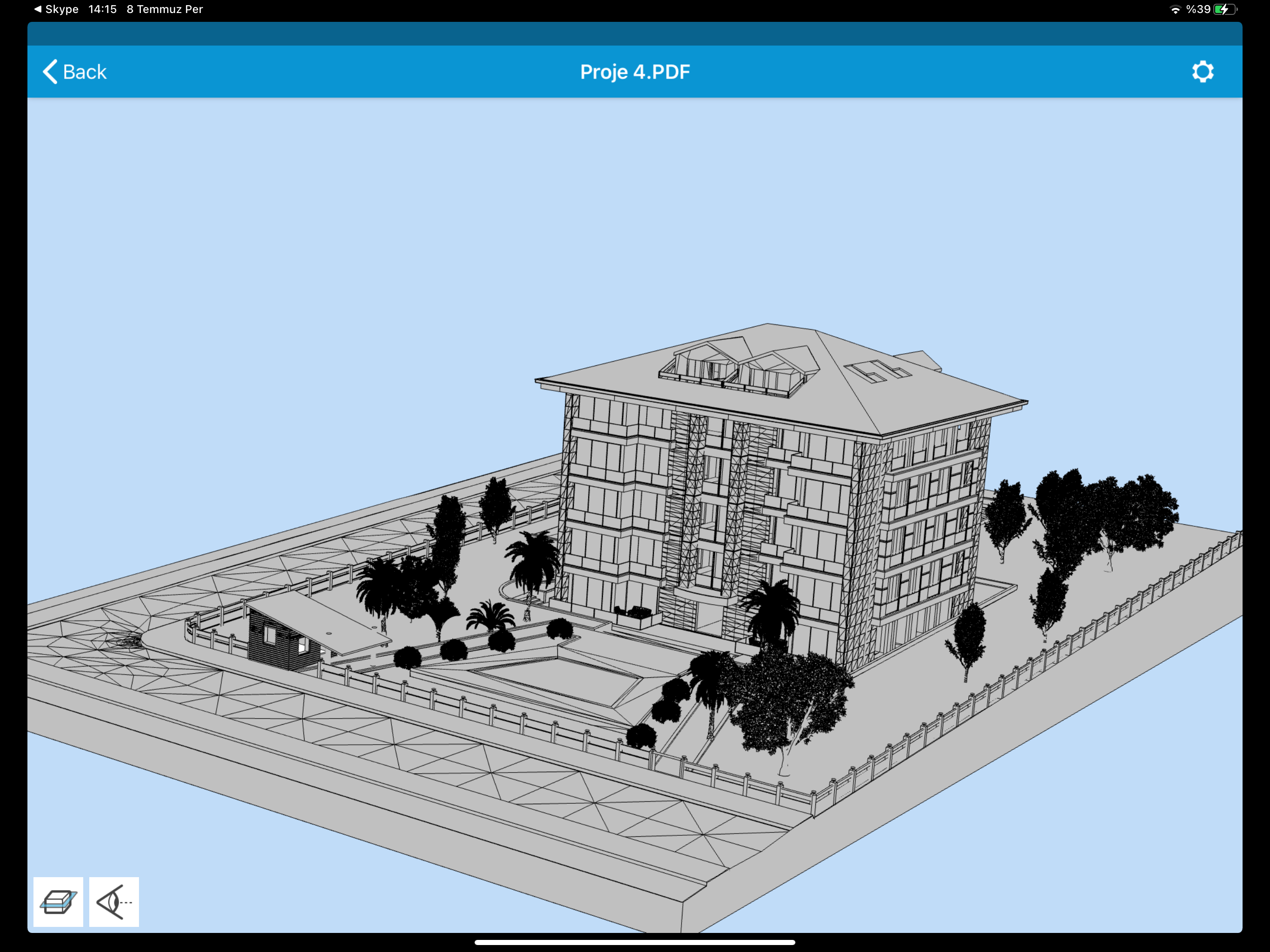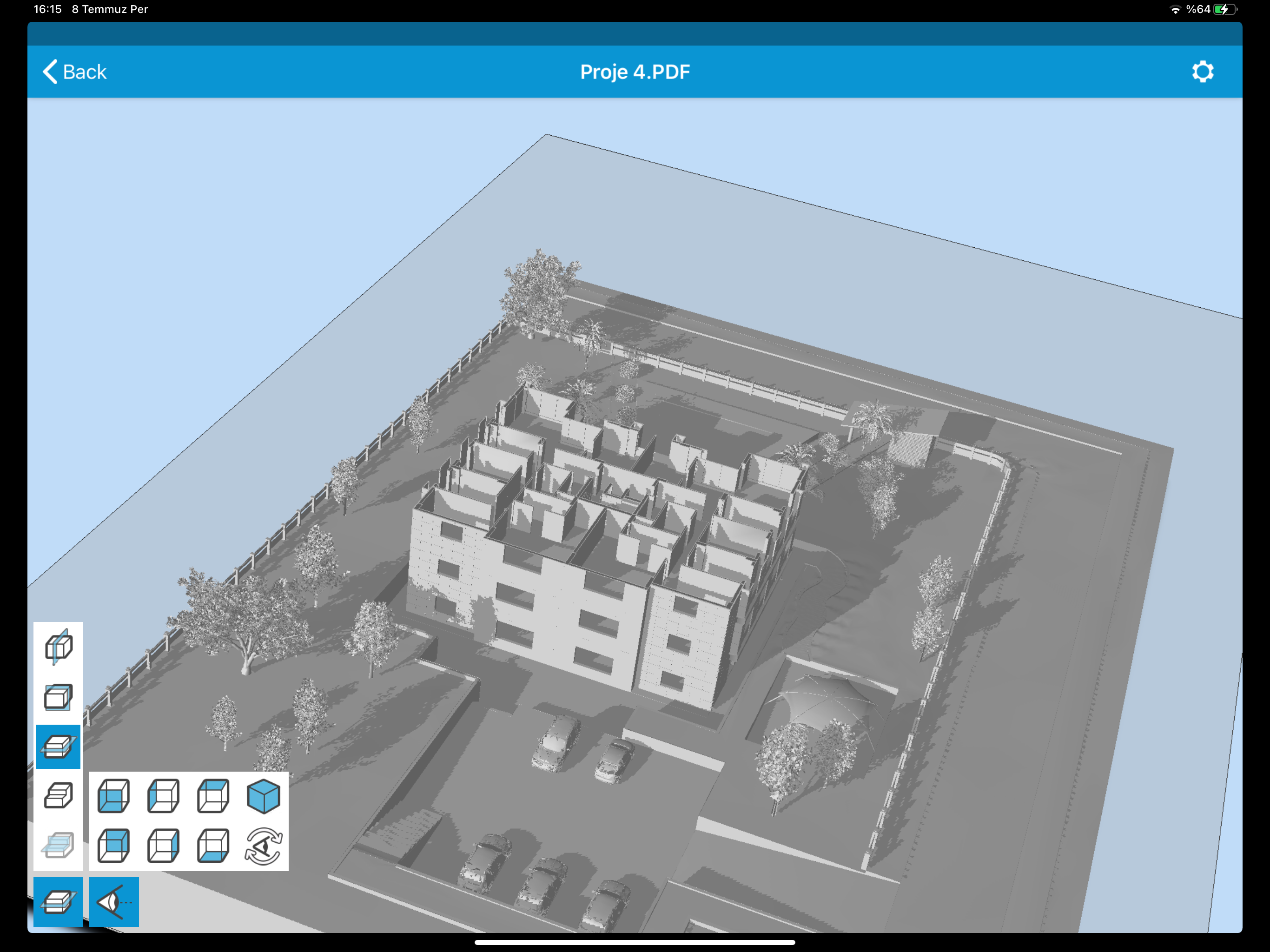 İsterseniz sol altta yer alan göz ikonuna dokunarak modelinize cephelerinden bakabilirsiniz.