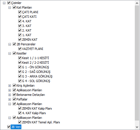 Kat planlarınız, kesitleriniz, görünüşleriniz, paftalarınız ekrana gelecektir.
