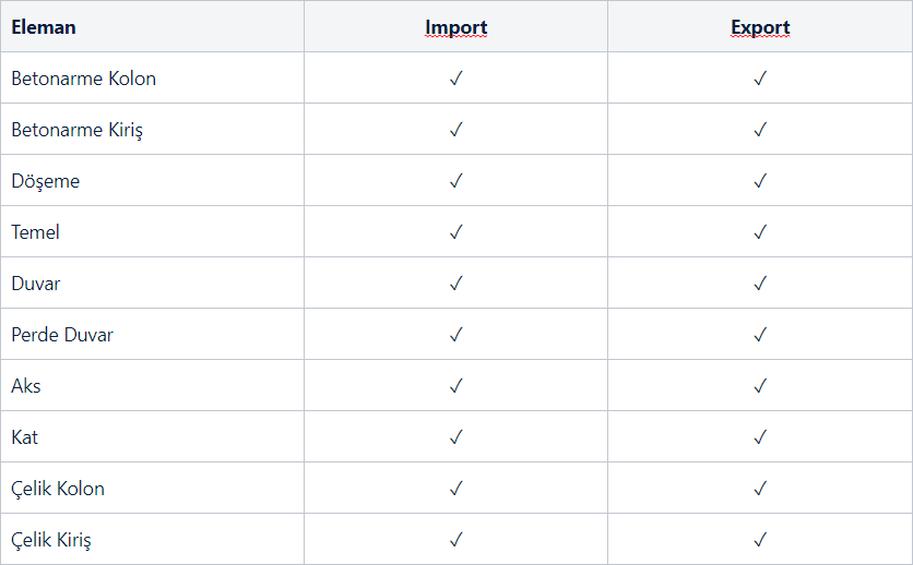 Geçerli statik objeleri gönder ![]() Kolon, kiriş, döşeme, temel duvar, kat, aks yapı elemanlarını ve kat bilgilerini ifc formatında dönüştürür. |