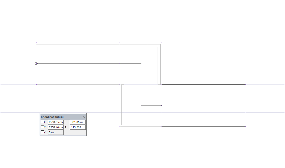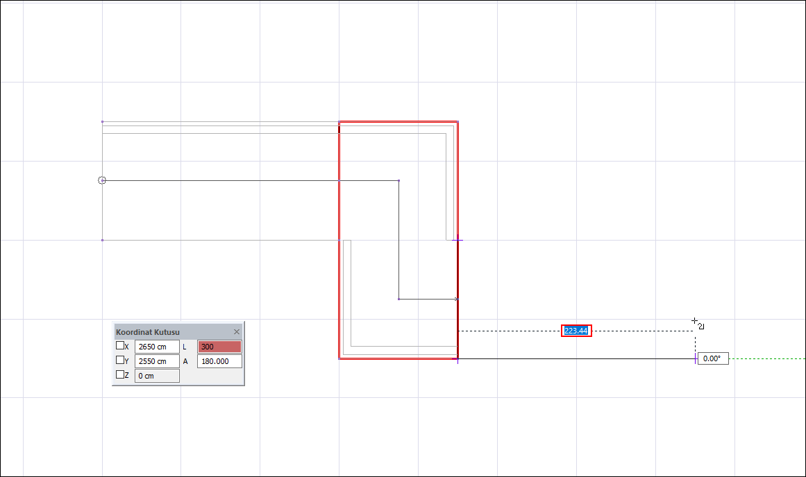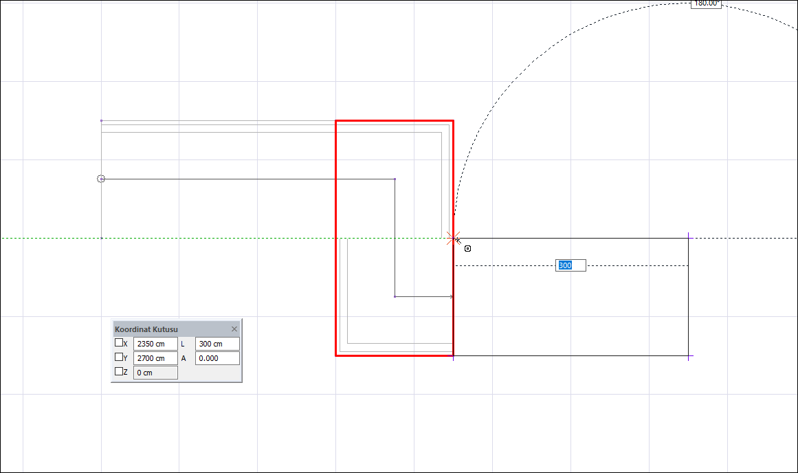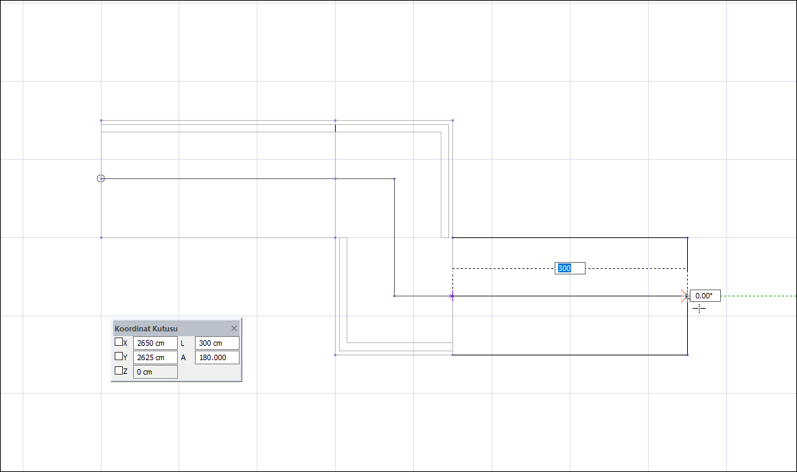 Rampa alanının boyunu girmek için klavyeden L tuşuna basın. Uzunluk değeri olarak 300 (cm) girin ve Enter tuşuna basın.