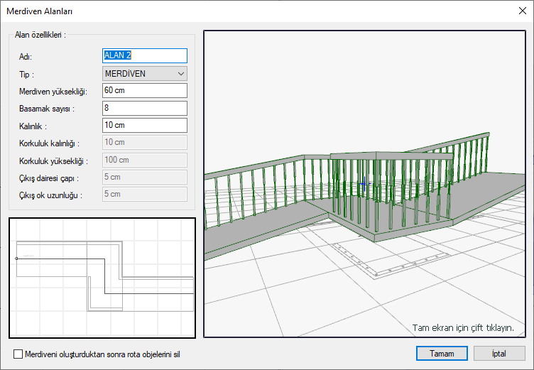 Bu alan rampa alanı olacağı için “Tip”, merdiven olarak seçili kalacaktır.