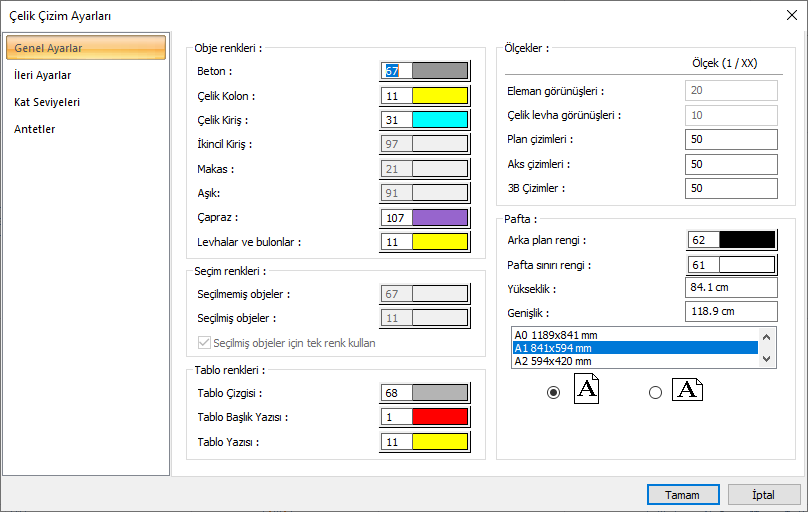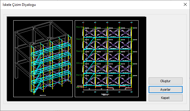 Ayarlar ![]() İskele çizimlerine ait çelik çizim ayarları diyaloğunu açar. |