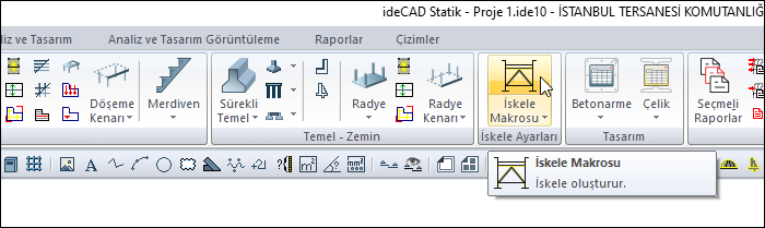 İskele Makrosu komutuyla statik projeye ait iskeleler oluşturulur.